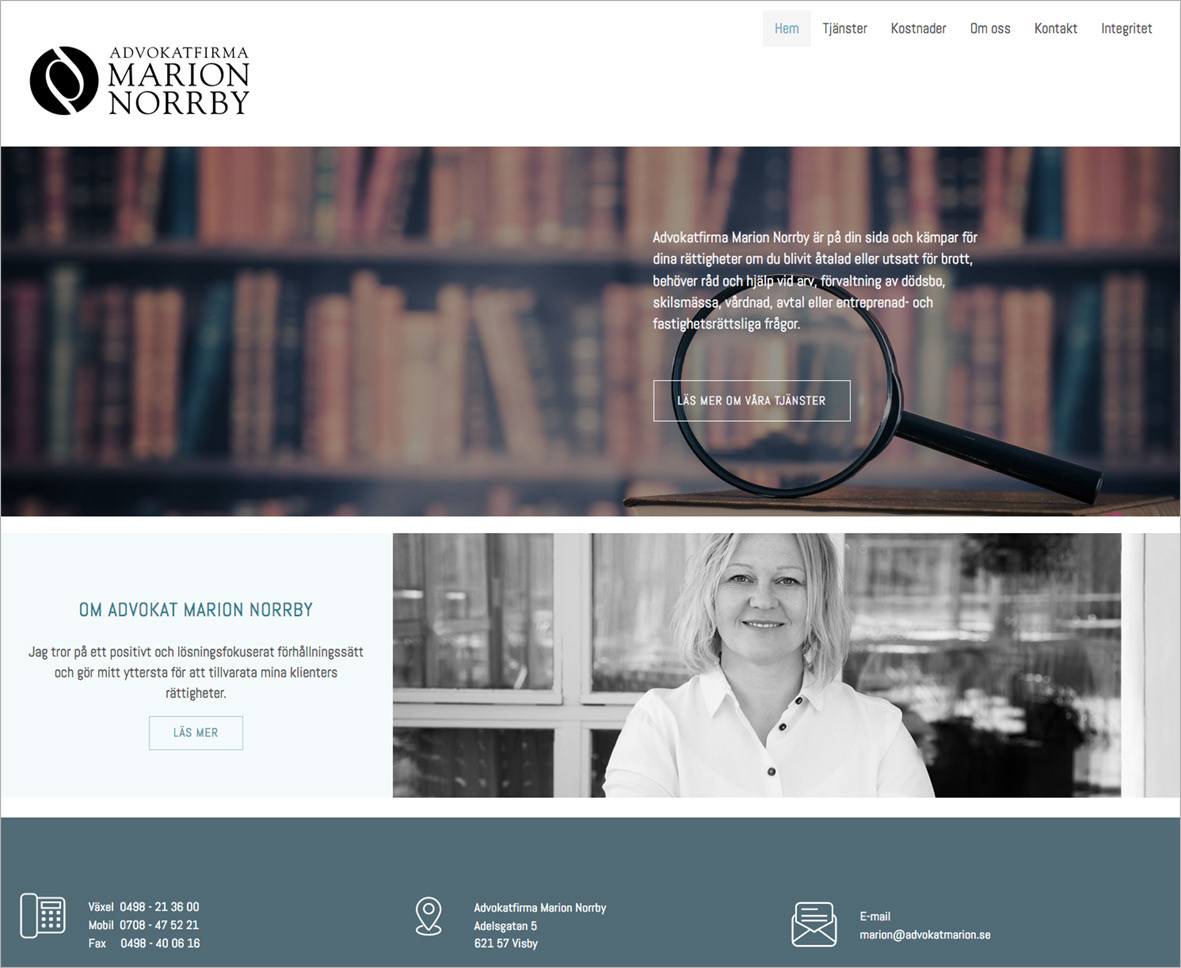 logo, stationary and website for Advokatfirma Marion Norrby, Lawyer • Visby